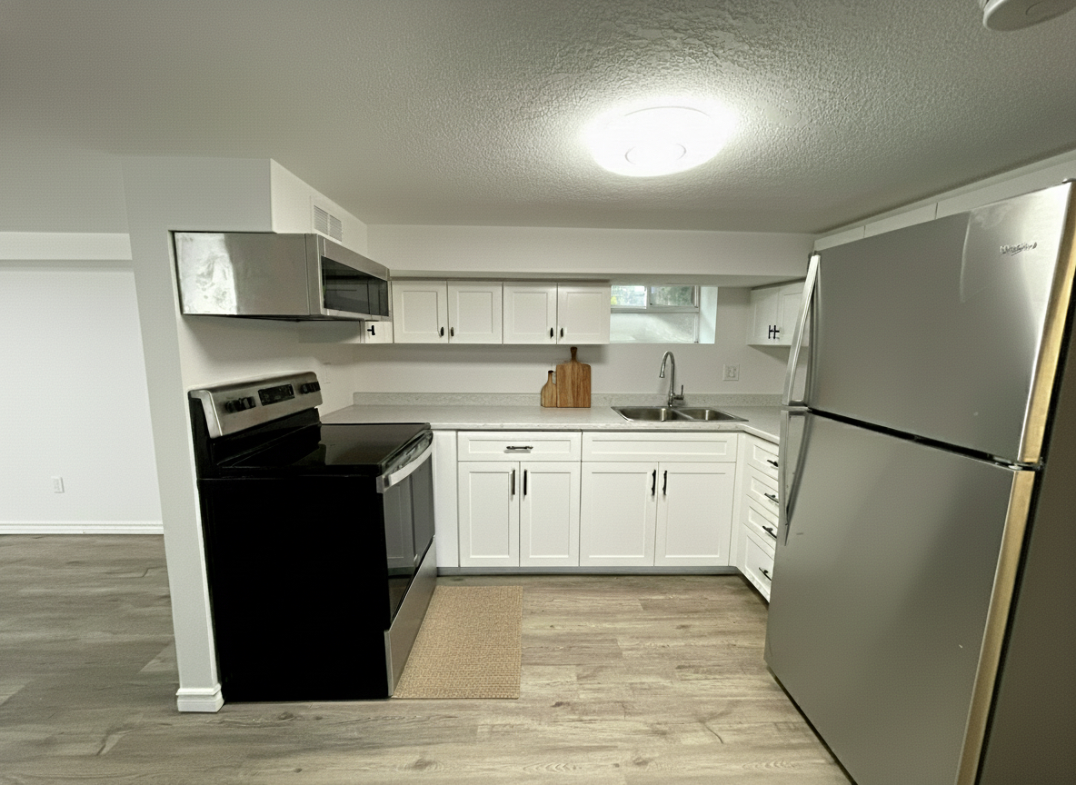 Welcome to this bright and spacious all-inclusive lower-level suite, available now! Nestled in Mid- Town, this well-kept suite offers comfort and convenience with a well sized bedroom, a generous living area, and a modern chef’s kitchen featuring full-size appliances. The spa-inspired bathroom boasts tiled tub/shower combo, while deep windows invite an abundance of natural light throughout. Enjoy access to the shared backyard and the peace of mind that comes with an all-inclusive rate; there's no need to worry about fluctuating bills.